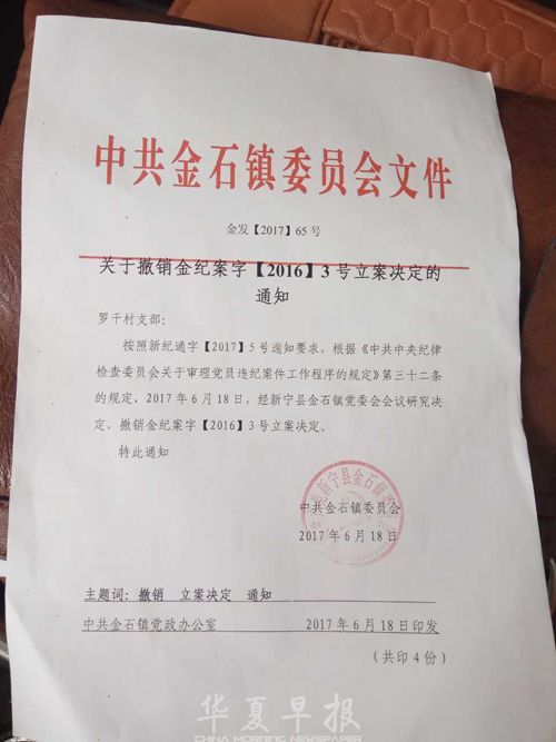 李芝玖对这份立案决定书表示不满,一直讨要说法。2017年6月18日,金石镇党委撤销了上述《立案决定书》。对于为何撤销之前的立案决定书,金石镇党委在撤销通知中并没有详述,仅称是按照新纪通字[2017]5号通知要求。