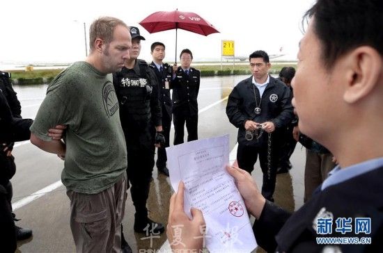 当日,应美国执法部门请求,中国警方在上海浦东国际机场将一名美籍红通逃犯移交美方,由美国司法部法警局押解回国。这是今年10月4日首轮中美执法及网络安全对话结束后,两国执法部门开展追逃追赃合作取得的最新成果。据了解,2017年6月国际刑警组织对其发布红色通报。经调查,该嫌犯于今年5月潜逃至上海,美方向中国警方提出协查请求。接美方通报后,中国警方经缜密侦查,迅速锁定其下落并将其抓获。新华社记者凡军摄