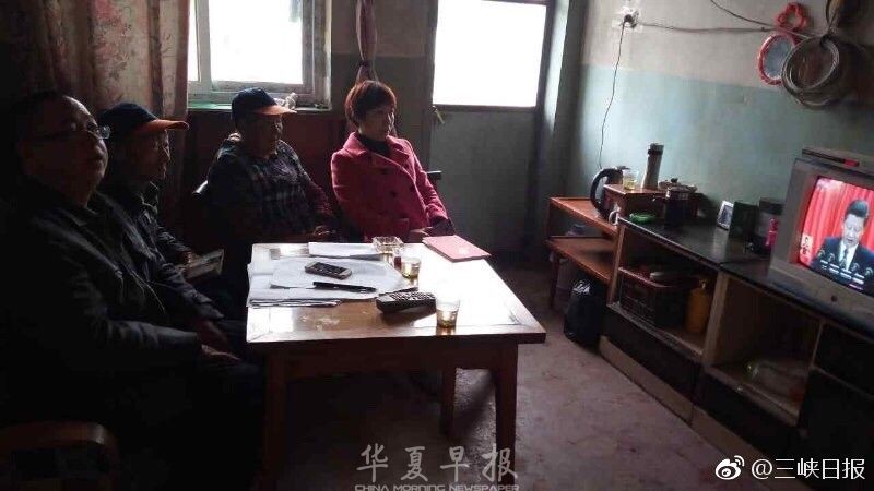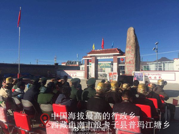 10月18日上午,西藏山南市浪卡子县普玛江塘乡村民们观看十九大开幕会直播。