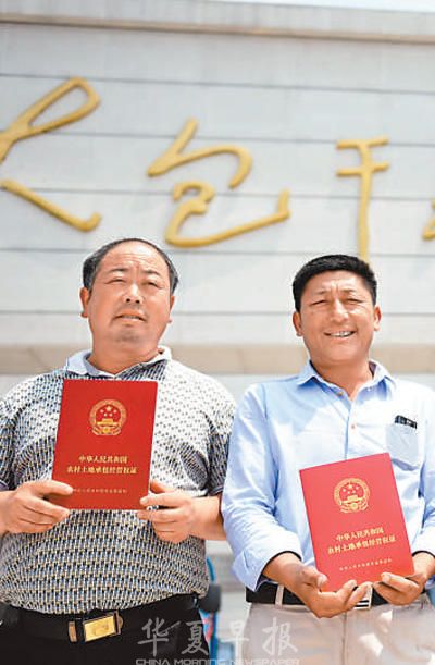 安徽省凤阳县小岗村农民展示领到的《农村土地承包经营权证》。新华社记者 刘军喜摄