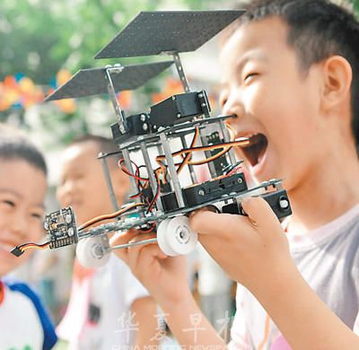 陕西西安一家幼儿园,小朋友拿着声控机器人,开心不已。人民视觉