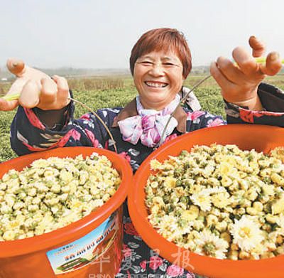 江苏连云港赣榆区班庄镇圈洪爽村的菊农正在采摘杭白菊。