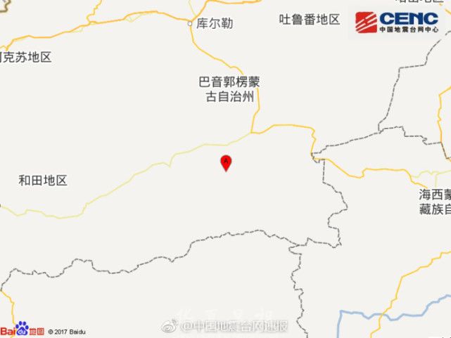 中国地震台网正式测定:11月01日09时02分在新疆巴音郭楞州且末县(北纬37.97度,东经87.33度)发生3.8级地震,震源深度25千米。