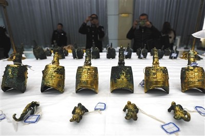 96起文物案件,1100余件文物被追回,追缴的西汉鎏金编钟、琉璃发簪世所罕见……17日,由公安部挂牌督办的陕西淳化“7·20”系列盗掘西汉古墓葬案宣布告破,警方经过一年多的侦查,打掉相互交织且组织严密的8个盗掘古墓葬犯罪团伙,共计91名犯罪嫌疑人落网。公安部刑侦局相关负责人介绍,这是近年来全国破获的重大文物犯罪系列案件之一。