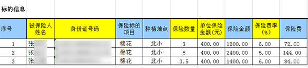 例如,衡水市冀州区政府办公室于2017年8月23日在上述公开专栏发布了《冀州区码头李镇数个村庄多名村民2017年棉花承保清单》(索引号001048823/2017-2252016)。这份文件将保险人的姓名、身份证号、保险标的项目、种植地点、保险数量、单位保险金额、保险金额、保险费率和保险费等信息悉数公开。