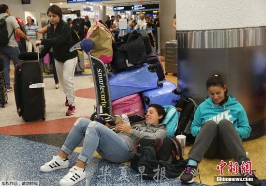 因飓风来袭,大量乘客在美国佛州机场滞留,图为部分乘客。