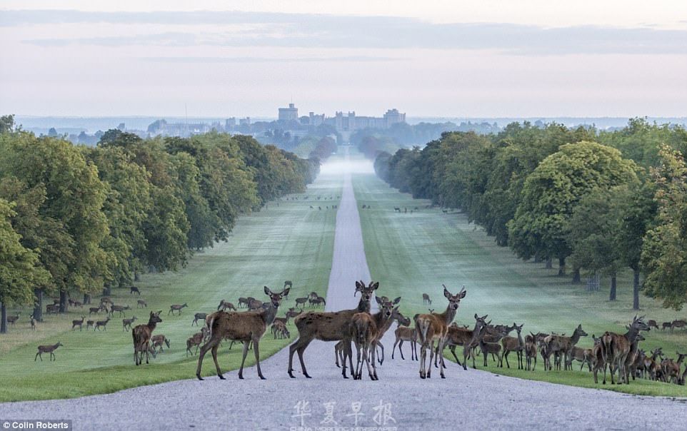把这一幕记录下来的是37岁的业余摄影师科林·罗伯茨。他已经在温莎公园散步有三年多的日子了。在黎明前,他成功地拍摄了这张照片,鹿群没有被惊扰。