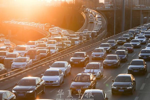 北京川流不息的车辆。(美国《华尔街日报》网站)