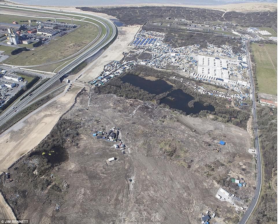 2016年3月拍摄的照片表明了在短短时间内,这里发生了翻天覆地的变化。难民营被移除后,曾经的葱绿繁茂的丛林不复存在,相反被荒凉光秃的土地替代。