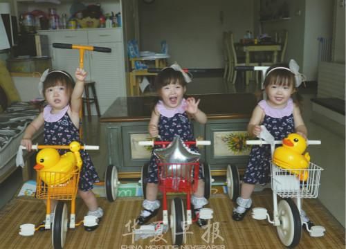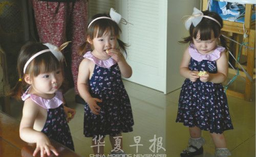 刘曦的三胞胎女儿。 雷远东 摄