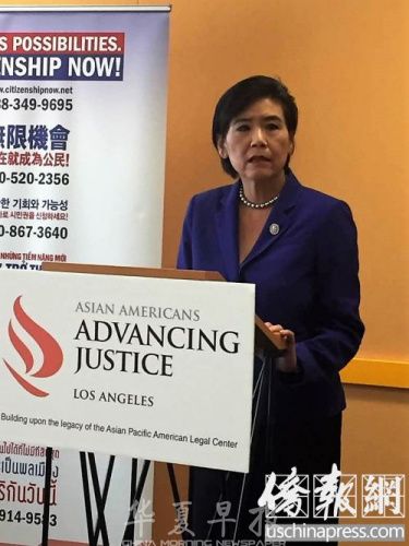赵美心在讲座中结合当前政治情况再次强调入籍的重要性,呼吁亚裔应尽快加入美国国籍,这主要基于两个方面的考虑。一是特朗普总统就职不久后颁发的“7国禁令”,“那段时间我的办公室一天之内接到很多电话,表示被困LAX机场,我当时就跑去机场了解情况。”赵美心说。二是关于“梦想法案”(DACA)。