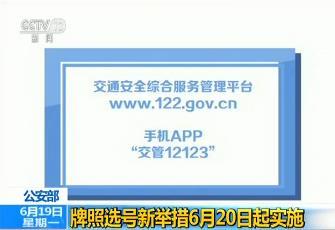 央视网消息:6月20日起公安部将正式启动机动车号牌管理改革,号码资源全部通过计算机系统公开向社会发放,发放方式全国统一,全部由计算机随机投放、自动增补。