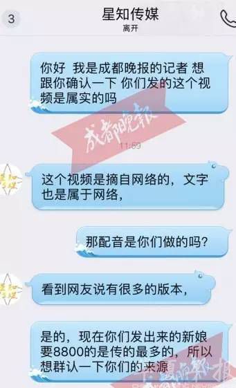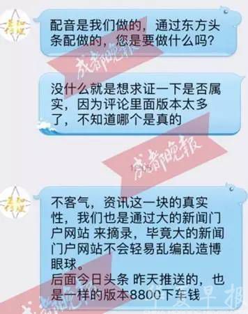 成都晚报记者通过加公司QQ号对话到了“星知传媒”工作人员,求证内容是否属实,该工作人员明确回应记者,这个视频是摘自网络的,文字也是来源网络,“配音是由我们做的,内容是通过大的新闻门户网站来摘录。”不过,该工作人员并未明确回应,文字内容到底从何而来。