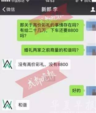 新郎小李:婚礼的事,两家人商量得很和谐,完全没有高价彩礼和下车费8800的说法。
