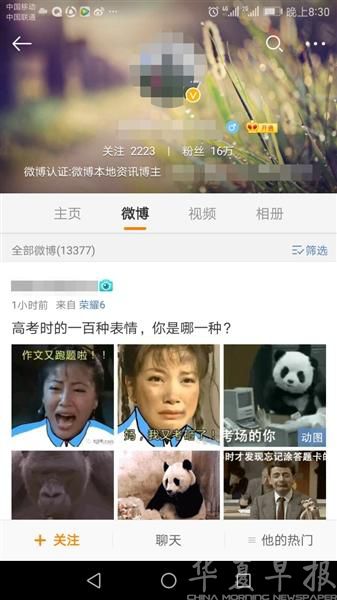 “经常看消息,我也大概知道哪些该发,哪些不能发。而且正规媒体都报道过的绵阳资讯,我想也是真实的,不会出现谣言,因此就进行大量转载,当有一定影响力之后,微博后台也会进行推荐。”包青说。