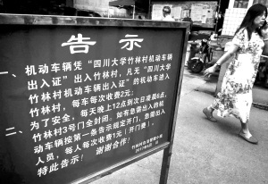 川大竹林村公寓门口告示牌上标有夜间开门费字样