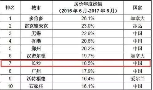 其中,无锡以22.9%的房价涨幅排在第三位,郑州以20.2%位居第五位,长沙以18.5%的房价涨幅排在第七位。