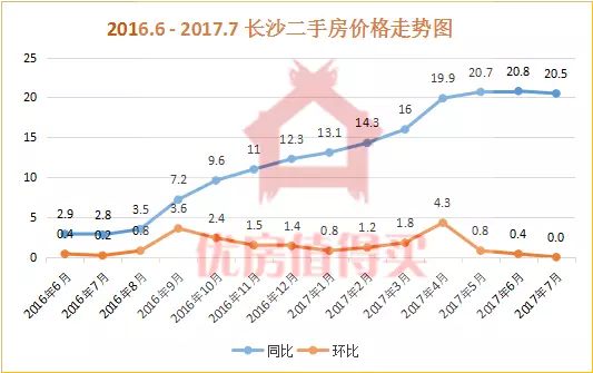 据某平台数据显示,长沙8月二手房均价为9565元/㎡,上涨幅度为1.4%。