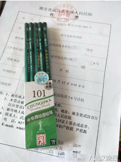 在刘先生手里,记者看到了一摞文书材料,其中有一份武汉市中院的传票和一份民事起诉状。刘先生被传唤的事由是“侵害商标权纠纷”,理由是“中华牌”商标所有人通过委托调查,发现刘先生的副食店销售假冒“中华牌”铅笔。“中华牌”铅笔厂要求刘先生停止销售侵犯“中华牌”注册商标权益的商品,支付侵权赔偿、公证费、律师费、交通费共计3万元,另外还要承担相关诉讼费用。