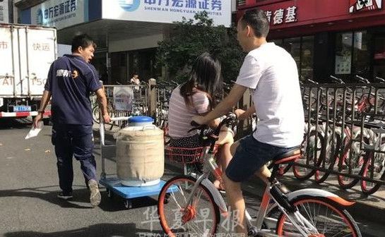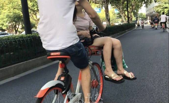 近日,有网友在杭州街头拍下了这样一幕:一小伙骑着共享单车,女友则坐在前面的车篮内,一路秀恩爱。