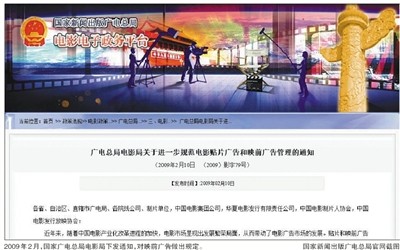 实际上,早在2004年6月,国家广电总局、国家工商总局曾发布过《关于加强影片贴片广告管理的通知》,明确要求影片贴片广告不得占用电影放映时间,电影院要对放映的贴片广告时间予以公告,未经影片版权方同意任何单位不得搭载、删减贴片广告。2009年2月,国家广电总局电影局发布《关于进一步规范电影贴片广告和映前广告管理的通知》,其中提及,影院电影放映存在“广告占用放映时间的问题更为突出,严重损害了消费者的利益,引起了广大观众的强烈反感”现象,并据此重申,“贴片广告、映前广告一律加在《电影片公映许可证》前,并在电影票面上标注的放映时间前放映”。