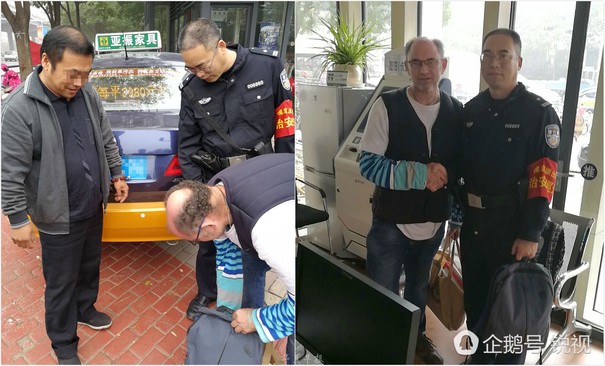 根据他们提供的出租车信息,赵冬立帮他们联系了出租车公司进行查询,并通过公安工作平台进行查询,终于查到了Adrlaan Loubster所乘坐车辆的车主信息和手机号码。电话拨过去,赵冬立表明来意,那头的出租车司机师傅立刻告诉民警,他拉活时确实捡到了客人落在车上的两个包,包内物品都妥善保存,一直等待有人跟他联系。在民警的建议下,出租车司机答应,专程开车把东西送到万达警务站。