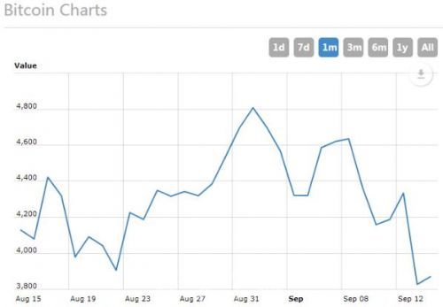 此番监管直接导致了比特币价格重挫。据worldcoindex数据,自9月1日以来,比特币从4800美元跌至3491美元,跌幅达28%,市值缩水近200亿美元。