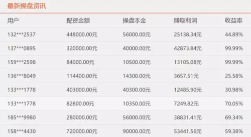 目前,类似陈枫所在的配资公司一样,五花八门的配资公司都“冒”了出来,乱象丛生。比如广州的一家配资公司,其官网为了吸引客户,甚至在显要位置直接发布了用户的“盈利数据”: