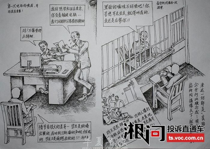 到看守所后,我把身上的700多元钱上交保管,填写了相关的信息,此时派出所的警务人员又出示了一张什么表格,叫我签字按手印,表上有对事情过程的简短描述,在描述中把我的情节写得非常凶残,而对学生的情节则轻描淡写,当时我心存疑问,便拒不签字。但警务人员劝导我说,这没有什么利害关系,这只不过是给看守所的一个材料说明。于是我又签了字,按了手印。最后我被送进了看守所的七号监室(简称“仓”)。