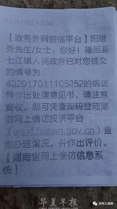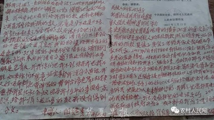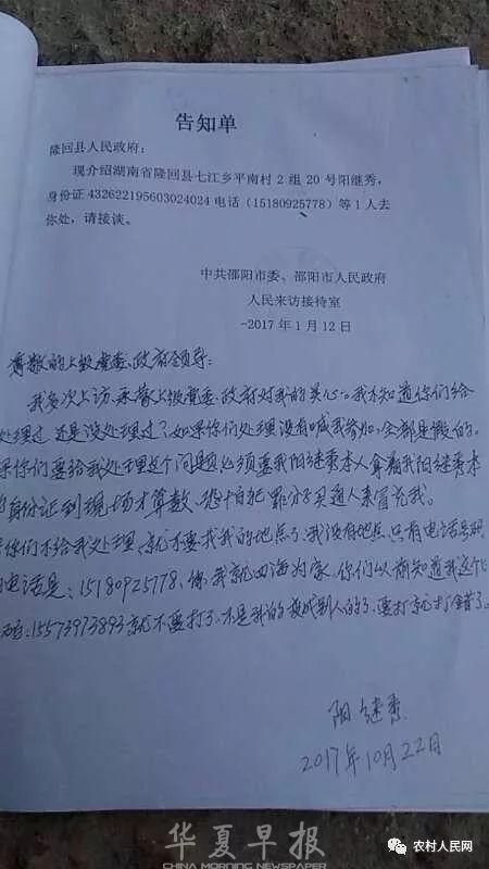 今年凤凰卫视又给我打电话;说给我寄过一副价值上万的收藏画,但画并没到我手中,如果不是接到这个电话,我还一直被蒙在鼓里不明不白。十多年来,我一直在漫漫上访诉讼路上跋涉,我只想求一个公道,还原事实真相。去年我到中央上访,转介当地政府得不到处理,今年又到湖南省人民政府上访,转介隆回县人民政府又得不到处理,我不明白,朗朗乾坤,怎么就没有小小百姓申冤的地方?也有很多好心人帮助我,帮我写了很多材料,投寄到中央电视台、省市纪委后,网外平台信访回复后,隆回七江镇人民政府竟以精神恍惚为由来忽悠我,回复上面已做处理,其实我的冤情一直没有得到解决。如今我无家可归,租居在六都寨镇街道寨市路(247号)一破旧民房,以小卖谋生。有好心人指点我向法院申诉,说如今是法治社会,法院会为民做主,查办诈骗罪犯,追回骗款!但我苦于家境贫寒;无力承担上诉费用。