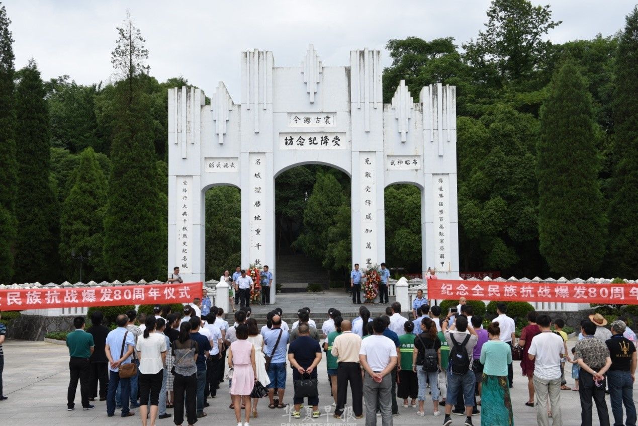 “八年烽火起芦沟,一纸降书落芷江“,上午10时,湖南芷江受降纪念馆上空响起了防空警报,纪念馆工作人员与参加本次研讨活动的主创人员100余人在纪念坊前凝神肃立,回忆80年前那段在苦难中爆发、于危亡中图存的悲壮岁月。警钟长鸣,警示当代中国人不能忘记,在中华大地饱受欺凌、丧权辱国的时刻,在民族存亡的最后关头,全国人民被迫发出最后的吼声。