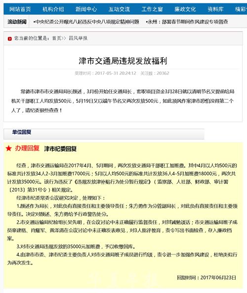 记者查阅公开资料发现,2017年6月,津市市交通运输局就因违规发放福利,局班子成员均受到处分和批评教育。湖南省纪委三湘风纪网显示,有网友投诉,津市市交通运输局2017年3月28日就以清明节名义提前给局机关干部职工人均发放500元福利,5月19日又以端午节名义两次人均发放500元。
