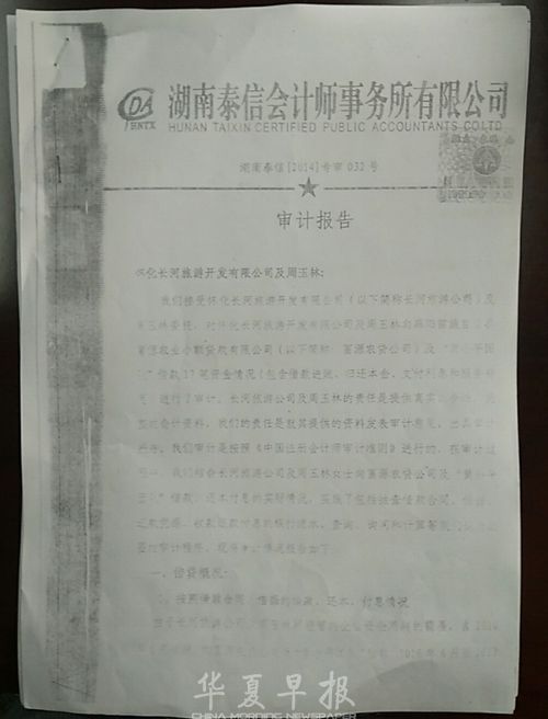 华夏早报讯(灯塔新闻记者 曾煜)近日,原湖南怀化市麻阳县政协委员(2012年底任怀化市人大代表)黄小平被双料博士周玉清实名举报在任期间放高利贷,最终把周玉清的企业拖垮。湖南泰信会计师事务所有限公司(以下简称泰信会计师事务所)审计报告显示,贷款利率超过银行4倍。记者联系上黄小平,其对高利贷一事未作出正面回复。