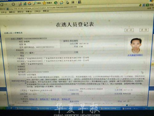记者掌握的一份在逃人员登记表显示,游煜富的哥哥游煜常则因为涉嫌合同诈骗被深圳市公安局龙华分局经侦大队立案。该登记表对案情进行简单介绍,2017年10月27日,刘某(化名)到龙华分局经侦大队报案,称2011年1月11日,其经共和公司董事长游煜富的介绍,认识了游煜富的哥哥游煜常,游煜常将他持有的某公司股份作价8000万转让给刘某。刘某签订《股权转让协议》并缴纳了转让金后才发现,游煜常早在2010年5月就将股份转给了别人。