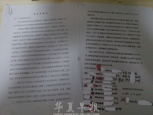 该举报信还称,游煜富2005年授意其哥游煜常和陈士茂成立深圳市和鸿房地产开发有限公司,“在2007年7月利用职务便利、滥用权力伪造村股东大会表决文件,冒用210余人签名,将共和村旧村改造项目约3.5万平米私自签给和鸿公司。”