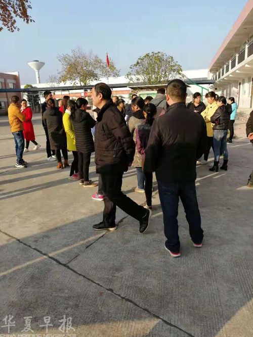 图为罢课当天,家长们在学校维权。