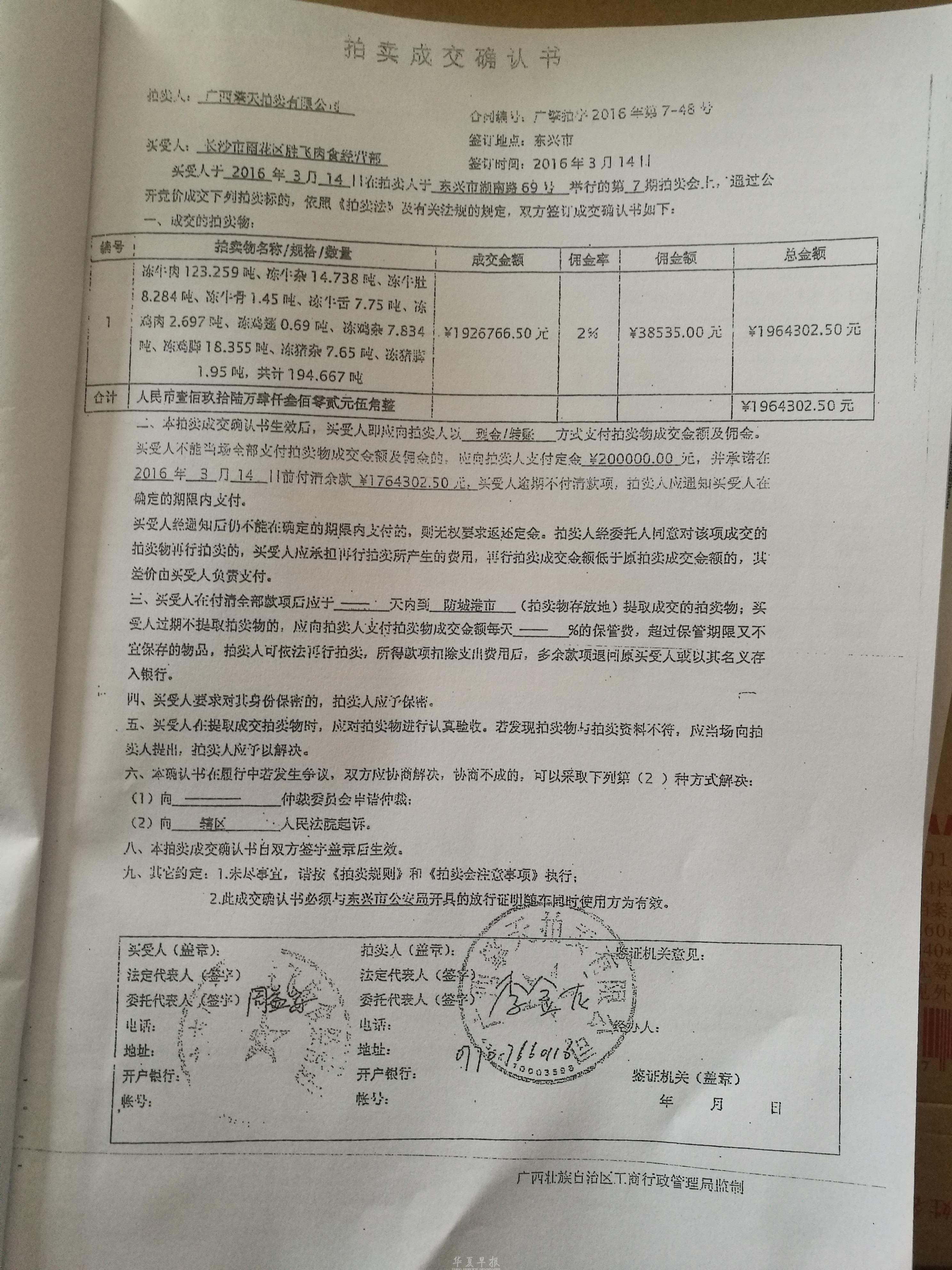 张三军的家属称,张三军所购所有冷冻食品,全部是通过合法拍卖手续从广西公安、工商购得,并都有中国检疫认证集团广西有限公司的检验合格的测试报告,货物通过汽车货运托至湖南时,广西相关公安部门都出具了文字证明手续。