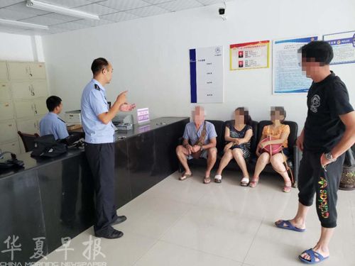 图为民警对非法居留的美国籍男子进行法制宣传教育。