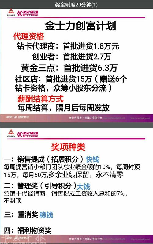 陈卫菊告诉记者,“我们在维权过程中了解到,金士力公司在营销过程中,以‘大健康、大梦想、大未来’ 为主题,采用双轨制、团队计酬的奖金制度开展直销业务,存在以金字塔形发展下线人员。针对不同层级的会员,还设置了专门不同层级的奖励标准。”