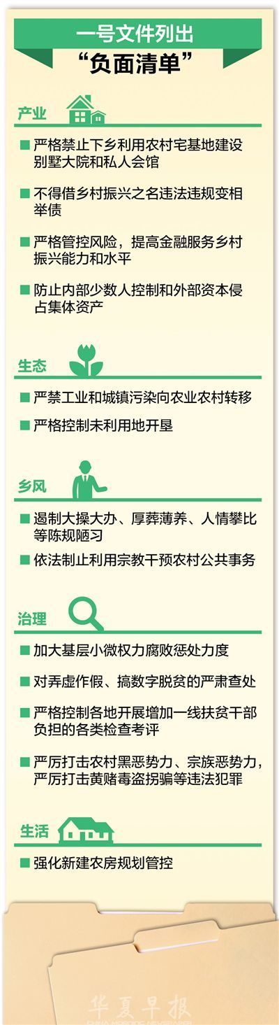 以往中央一号文件多是聚焦某一项具体工作,今年中央一号文件的突出特点是管全面,把创新、协调、绿色、开放、共享的新发展理念贯穿始终,坚持农业农村优先发展,按照乡村振兴五个方面的总要求,统筹谋划农村经济建设、政治建设、文化建设、社会建设、生态文明建设和党的建设,加快推进农业农村现代化,实现农业全面升级、农村全面进步、农民全面发展。