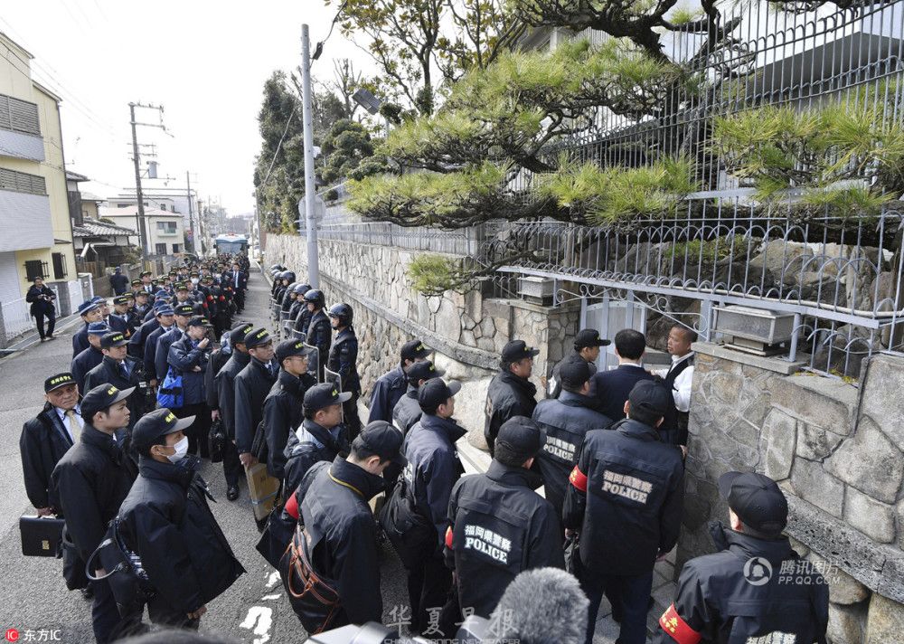 当地时间2018年2月26日,日本兵库县神户市,大批警察对当地的“山口组”总部进行搜查。“山口组”是日本最大黑帮,也是世界上最大的犯罪组织之一。因涉嫌使用伪造银行卡在日本多地ATM机内盗取现金,2月26日,日本福冈、千叶等地警方对山口组进行联合搜查。搜查对象包括山口组在兵库、爱知、东京、埼玉等地的5个分支机构。