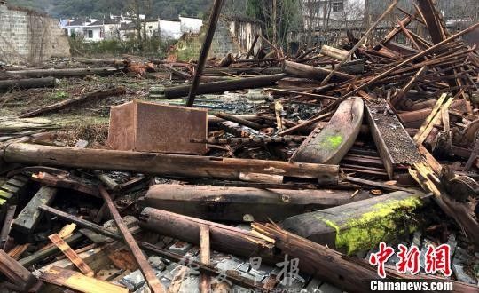 3月4日,江西省婺源县思口镇漳村一座距今近三百年的王氏敦伦祠被暴风雨刮倒。钟欣 摄