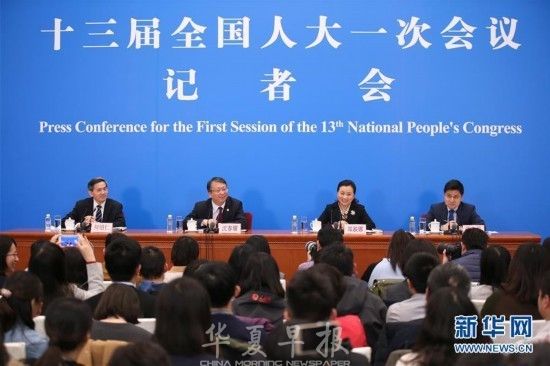3月11日,十三届全国人大一次会议秘书处法案组组长、全国人大常委会法工委主任沈春耀,法案组副组长、全国人大常委会法工委副主任郑淑娜就宪法修正案相关问题回答中外记者提问。新华社记者金立旺摄