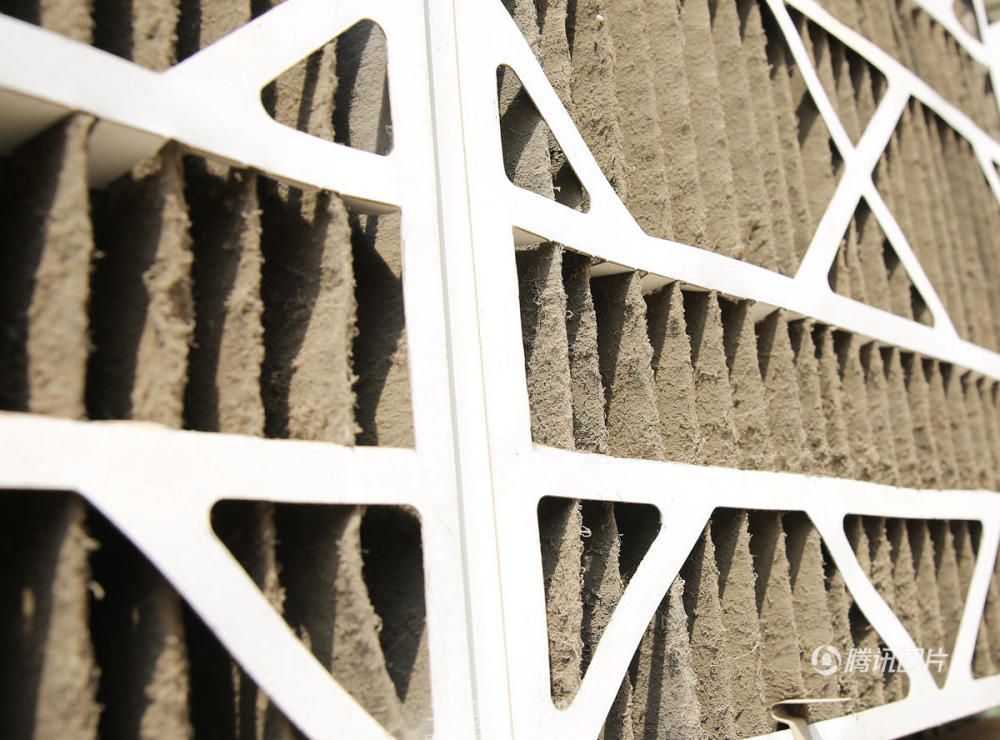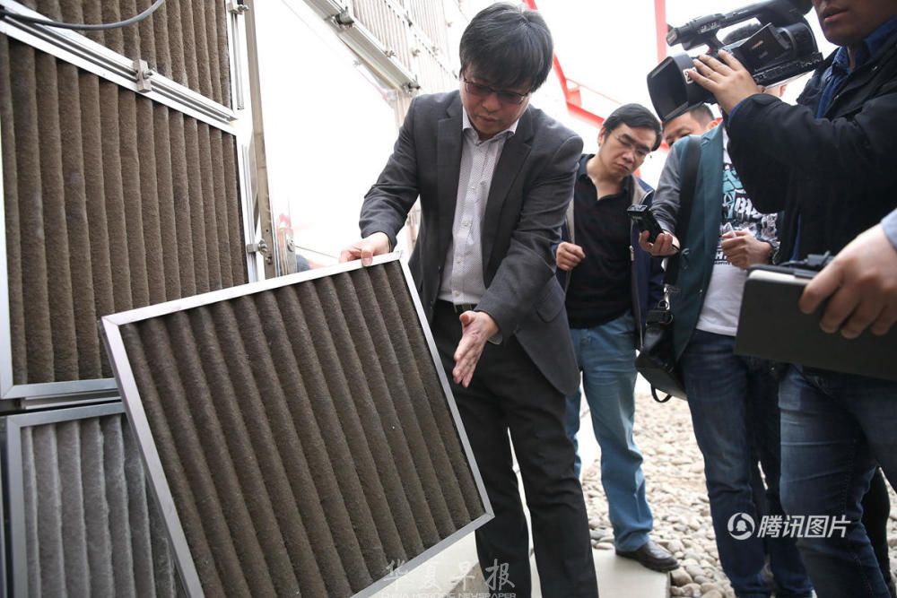 塔身的四周,是透明玻璃的屋顶。屋顶下,围绕着塔身的三面墙上,布满了过滤材料,就像空气净化器使用的过滤网一样。据介绍,三面墙分别是三种不同的过滤材料,以检测各自的效能。华商报记者分别摸了摸几种过滤材料,满手都是灰,其中清洗过的过滤材料和未清洗的,几乎是一白一黑的对比。