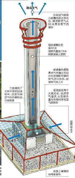 “除霾塔”运作原理示意图。