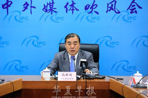 2018年4月24日,外交部副部长孔铉佑在外交部举行媒体吹风会,介绍中印领导人非正式会晤有关情况。