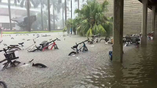 厦门市街头一角,暴雨将自行车全部淹没。通讯员肖春松摄