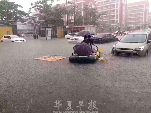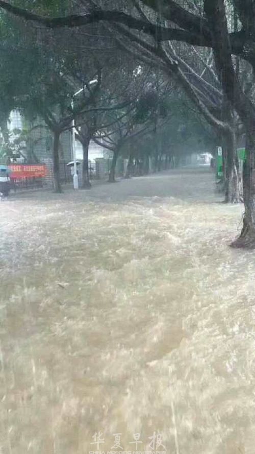 厦门大学门口被暴雨淹没。 通讯员肖春松 摄