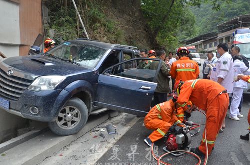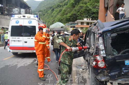 华夏早报四川雅安讯(滚动新闻记者 罗阳 通讯员 李佳)5月28日10时38分,四川省雅安市消防支队宝兴大队接到报警,位于穆坪镇顺江村处一辆大货车与一辆越野车相撞,有三人被困于车内,情况万分危急。大队迅速出动一辆城市主战消防车、一辆抢险救援车12名指战员,迅速赶赴现场实施救援。