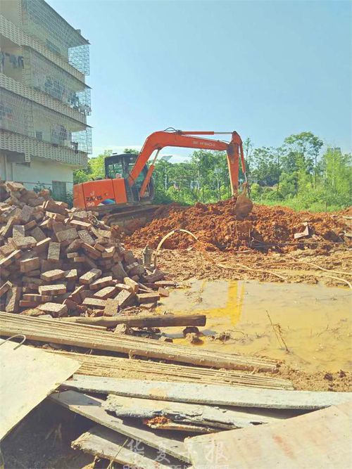 华夏早报湖南邵阳讯(记者 刘大华 通讯员 刘传 邓晖 刘和平)6月6日下午,湖南省武冈市法相岩街道办事处城管办、国土规划执法中队执法人员在动态巡查时发现一处刚刚打好基础的违法建筑,为确保辖区内违建零增长和师大附中项目建设加快推进,该办事处动用挖机彻底捣毁违建基础,并恢复土地原状。